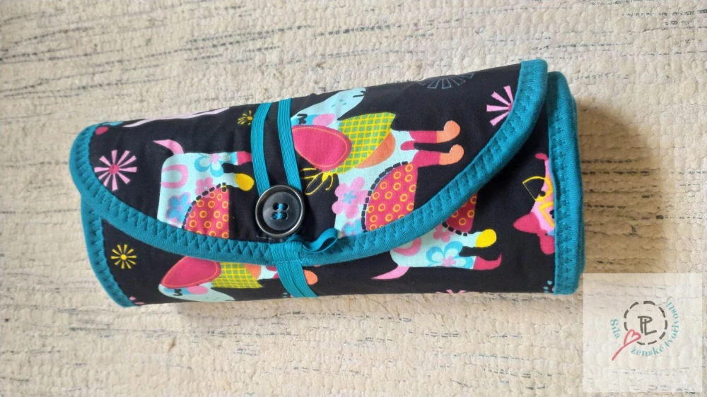 Penál se dá snadno stočit. Zapíná se na gumu s knoflíkem. Pastely i bločky se zastrkují do látkových kapsiček. Penál je pěkně vypolstrovaný, aby dobře držel tvar a zároveň ochránil pastely i bločky.