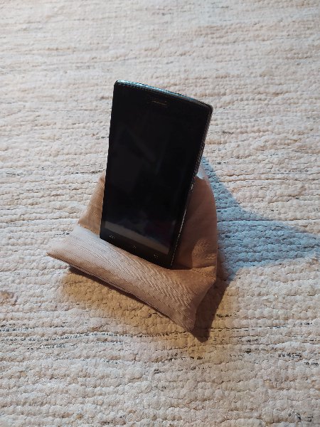 Stojánek na mobil - polštářek pod mobil, tak aby mobil dobře nakloněný a dalo se dobře sledovat video atd... na mobilu. Lze použít jak na výšku, tak na šířku mobilu.