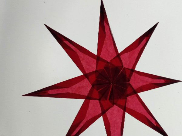 Skládaná hvězda z transparentního papíru, která krásně dostváří atmosféru místnosti.